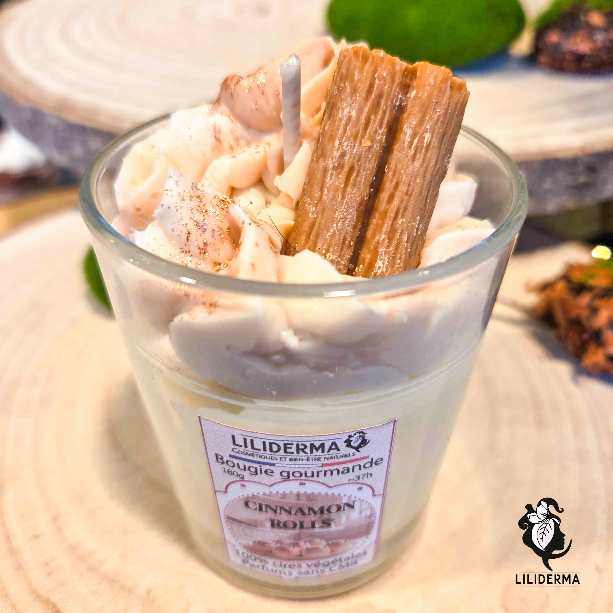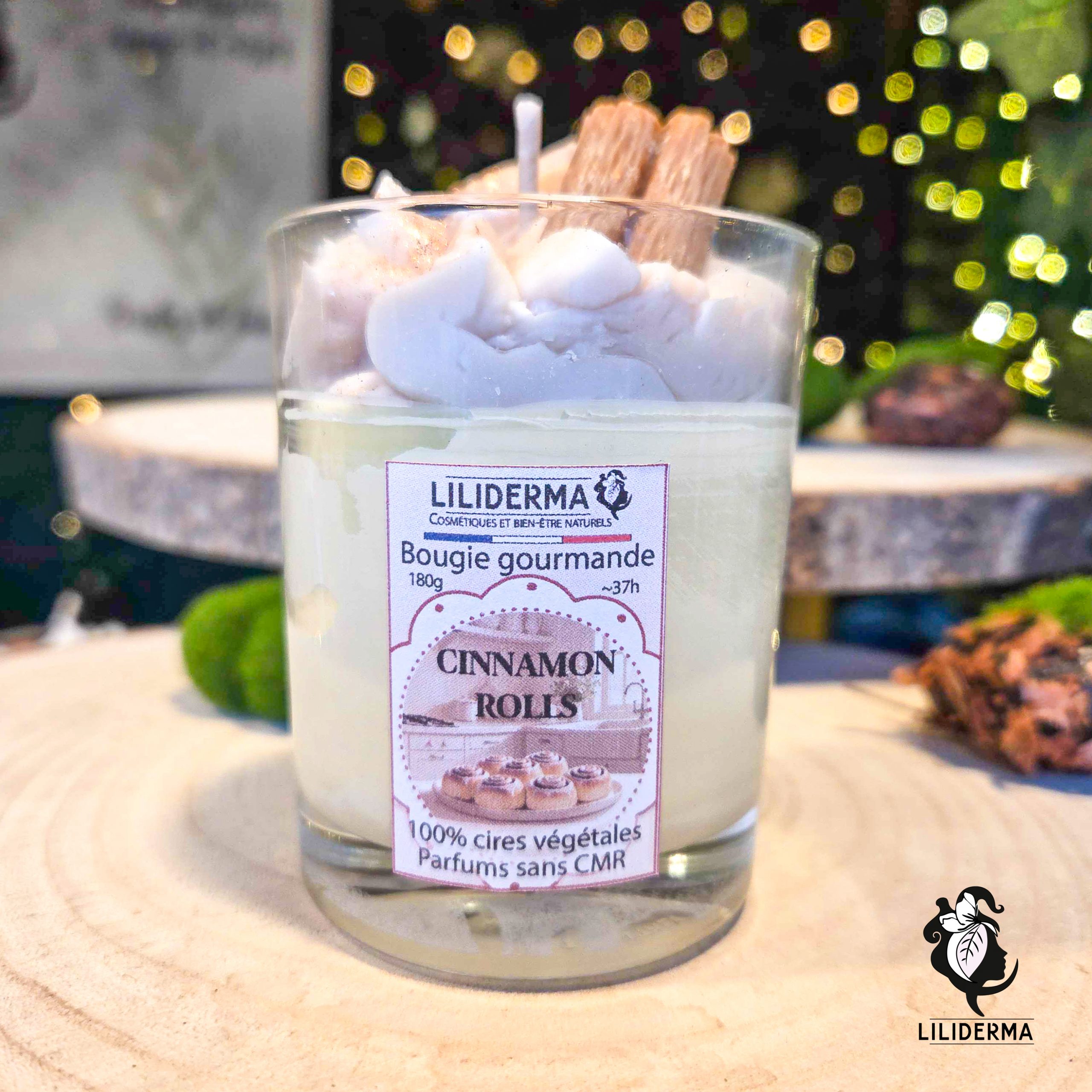Et en plus, notre bougie gourmande parfumée Cinnamon rolls est fabriquée en France par nos soins. Nous avons donc sélectionné des cires 100% végétales pour concevoir un mélange de cires qui permette une bonne diffusion de l’odeur à froid comme à chaud. De plus, nous utilisons des cires de tournesol garanties sans OGM ni pesticides et origine Europe.
